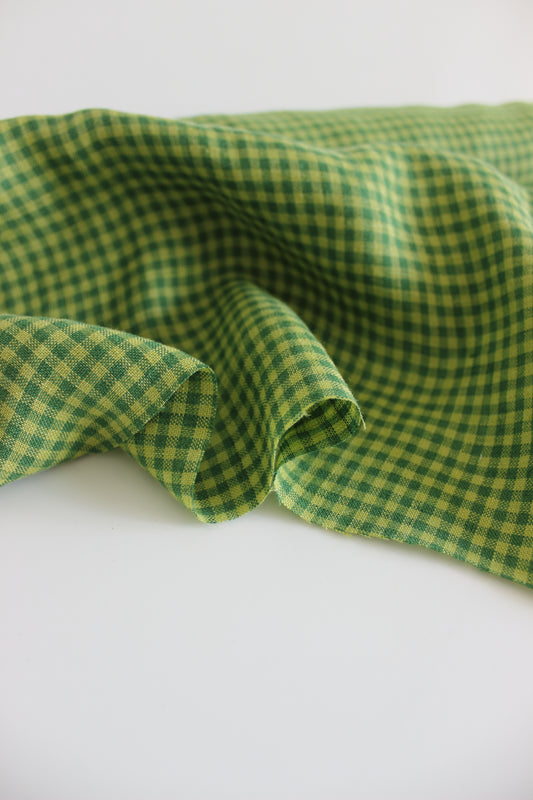 Green Gingham Check 100% Linen Fabric $38 p/m PREORDER