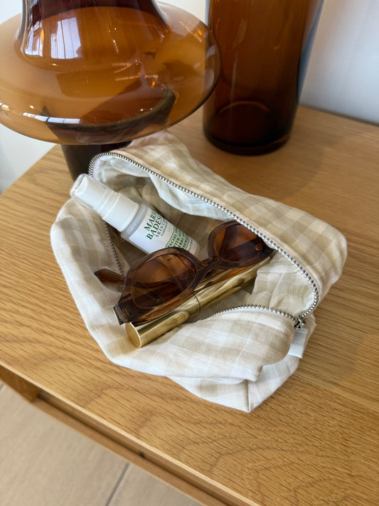 Sold outBeige Gingham Cosmetic Bag