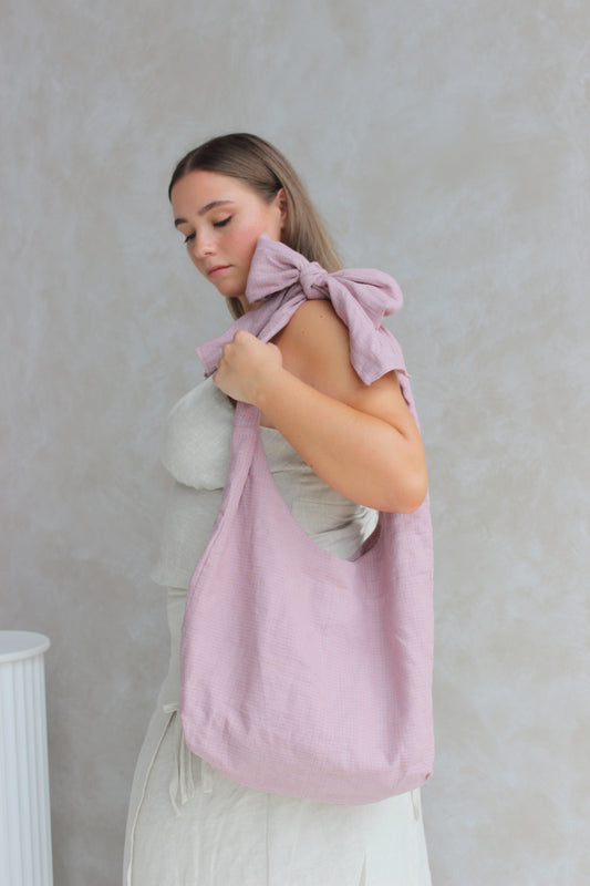 Patchwork Bow Tote Bag in Lilac