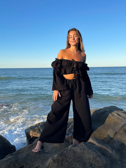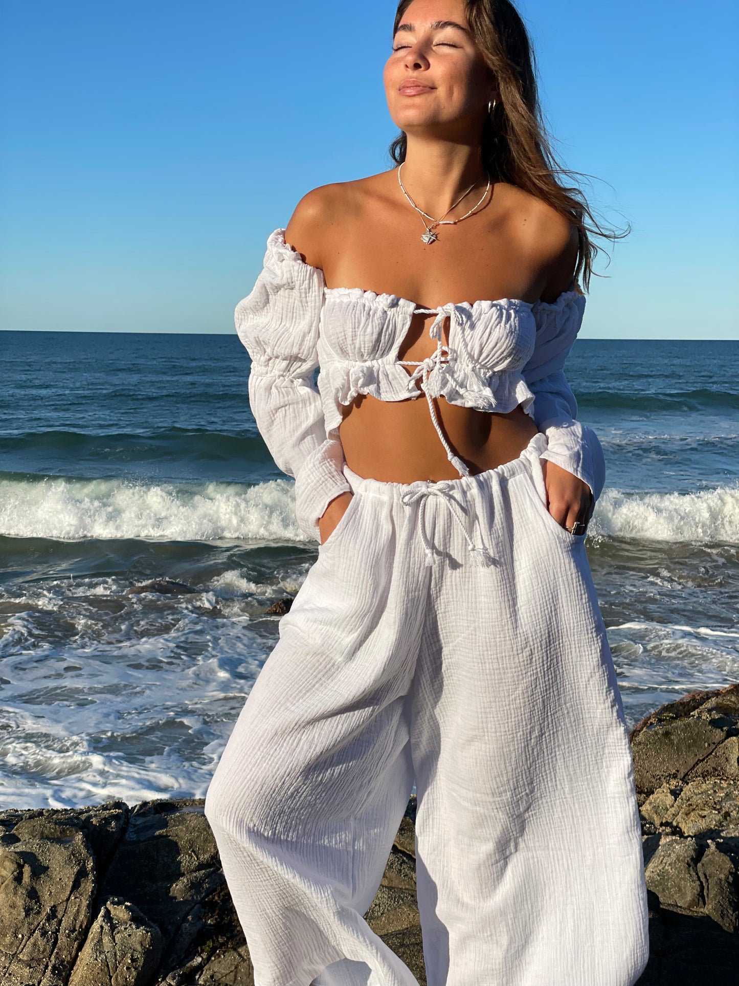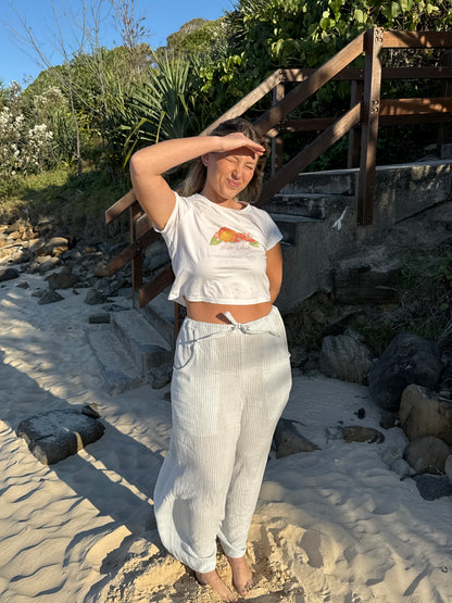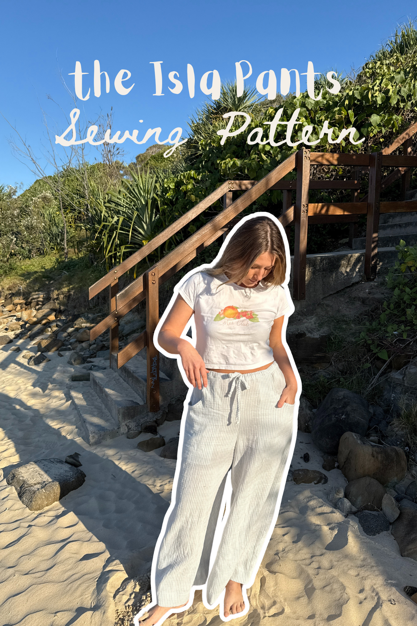 A comfortable pair of relaxed fitted pants, the Isla Pants are a beginner-intermediate friendly sewing pattern that is sure to become a favourite to make! These pants feature a comfortable relaxed fit, deep front pockets, wide legs and an adjustable waistband with drawstring. Learn to sew your very own Isla Pants today and pair with the matching Isla Top (coming soon)!
