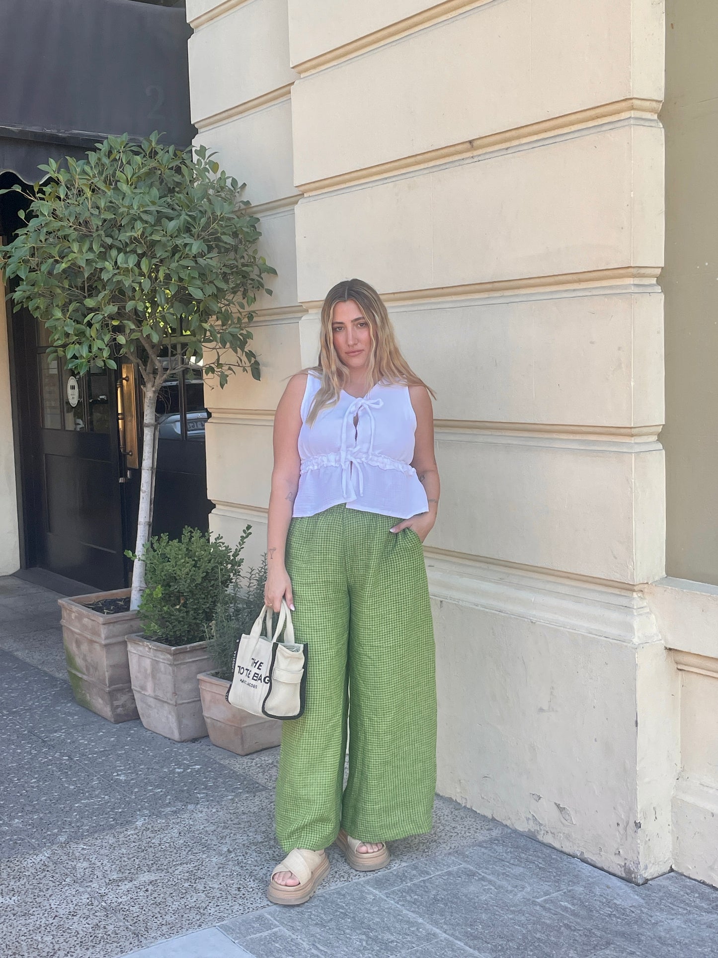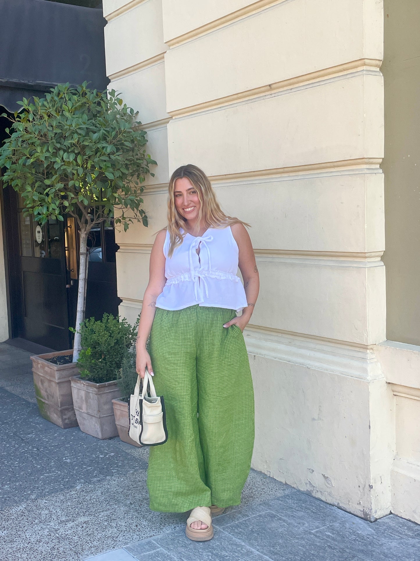 Introducing the Juliette Top. Crafted from airy cotton double gauze fabric, this top boasts a dreamy texture that feels as light and soft to the touch. It features a completely adjustable waistline that allows you to customize the fit to your preference, ensuring comfort and confidence with every wear. Wear it with the front tie closed or open, and choose to have the bustline loose or tight, making the Juliette Top effortlessly transition from day to night. This top is a gorgeous new addition to your wardrobe.